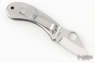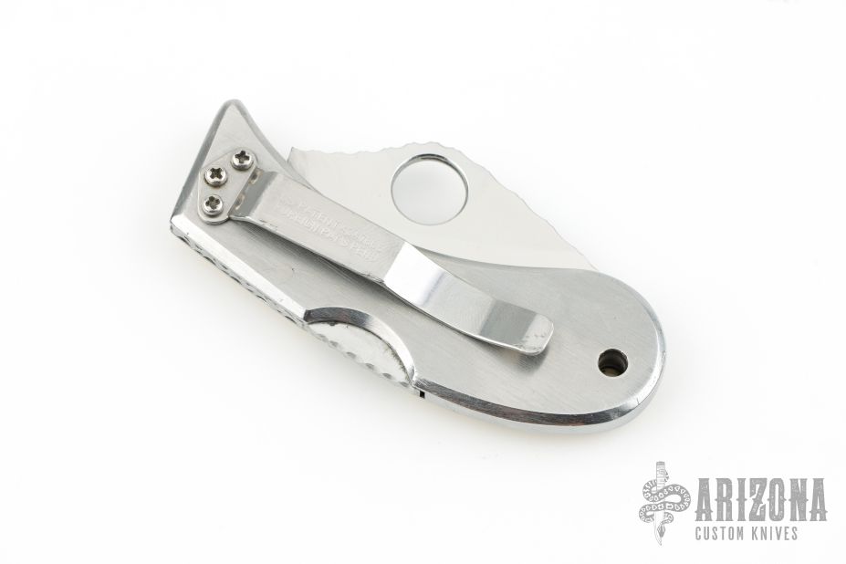 This Co-Pilot by Spyderco features a satin finished blade with thumbhole. The handle is stainless steel with a tip down clip. Has some scuffs and scratches, otherwise great condition. Blade Steel: G-2 Stainless Steel.
