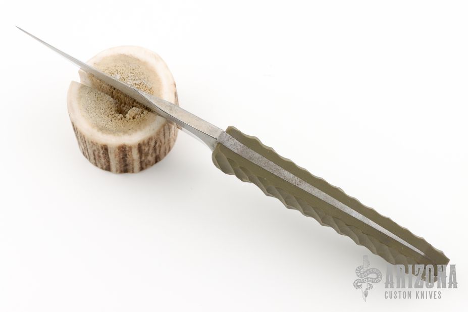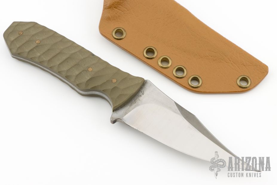 The overall mission is to offer a variety of high performance, handmade knives from kitchen to outdoors to self defense pieces. I do things the right way, one piece at a time. I am meticulous in my material selection, heat treating and effort in the details to offer people the best knives I can. As someone who enjoys the craft of knifemaking and has a lot of interests, I make knives for a wide variety of uses. Generally these are broken down into two simple categories: -Field Grade: Everyday working knives made to perform with good geometry, heat treat and materials suited more towards ease of maintenance and durability. CPM154 is the most common steel used as it is the best all-around steel for most situations. Sometimes, steels like CPM3V or PSF27 will be offered as well. A stonewash finish is the most common finish I offer on Field Grade pieces. -Signature Grade: My opportunity to explore and deliver a higher level of old world craftsmanship. The performance, high quality heat treat as the working knives, but with more premium features, more striking cosmetics and the use of more rare materials. Finishes can vary, from painstakingly hand rubbed and polished metal, high gloss satin finishes and pattern acid etched finishes. Blades may be stainless, or carbon steel with visible hardening lines-commonly referred to as a hamon. Thicker stock will often come with a tapered tang. You will also see hand sanded handles made from exotic woods, vintage phenolic materials, and other specifically selected accouterments.