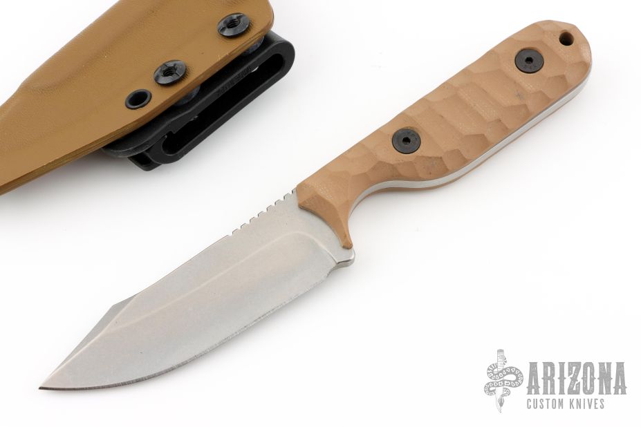 The overall mission is to offer a variety of high performance, handmade knives from kitchen to outdoors to self defense pieces. I do things the right way, one piece at a time. I am meticulous in my material selection, heat treating and effort in the details to offer people the best knives I can. As someone who enjoys the craft of knifemaking and has a lot of interests, I make knives for a wide variety of uses. Generally these are broken down into two simple categories: -Field Grade: Everyday working knives made to perform with good geometry, heat treat and materials suited more towards ease of maintenance and durability. CPM154 is the most common steel used as it is the best all-around steel for most situations. Sometimes, steels like CPM3V or PSF27 will be offered as well. A stonewash finish is the most common finish I offer on Field Grade pieces. -Signature Grade: My opportunity to explore and deliver a higher level of old world craftsmanship. The performance, high quality heat treat as the working knives, but with more premium features, more striking cosmetics and the use of more rare materials. Finishes can vary, from painstakingly hand rubbed and polished metal, high gloss satin finishes and pattern acid etched finishes. Blades may be stainless, or carbon steel with visible hardening lines-commonly referred to as a hamon. Thicker stock will often come with a tapered tang. You will also see hand sanded handles made from exotic woods, vintage phenolic materials, and other specifically selected accouterments.