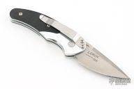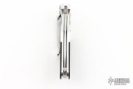 This 3150 Impel Automatic by Benchmade features a drop point blade with swedge. The handle is comprised of an aluminum frame with black G10 overlays. Push button and sliding safety on "A" side of handle The polished steel pocket clip is positioned for tip down carry. Comes with original box and drawstring pouch. Excellent condition.