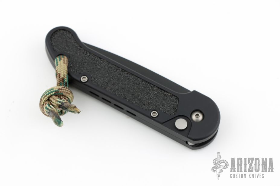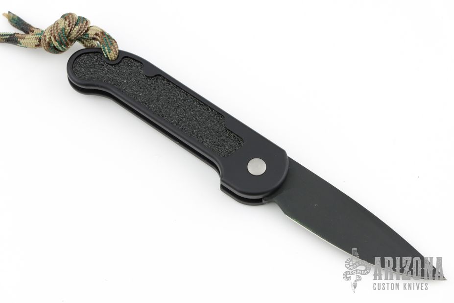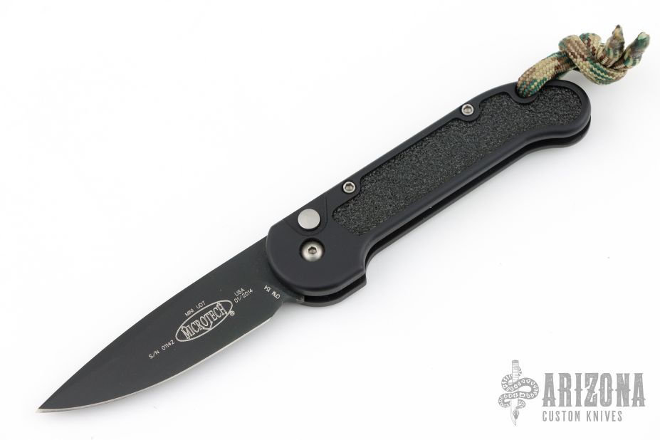 This Mini UDT by Microtech has a black plain edge blade. The handle is black aluminum with non-slip inserts. Side opening coil-spring automatic. Dated 01/2014 and s/n 01142. Includes original box and paperwork. Excellent condition.