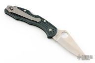 This Spyderco Delica 4 knife has a British Racing Green FRN handle and a premium ZDP-189 stainless steel blade.