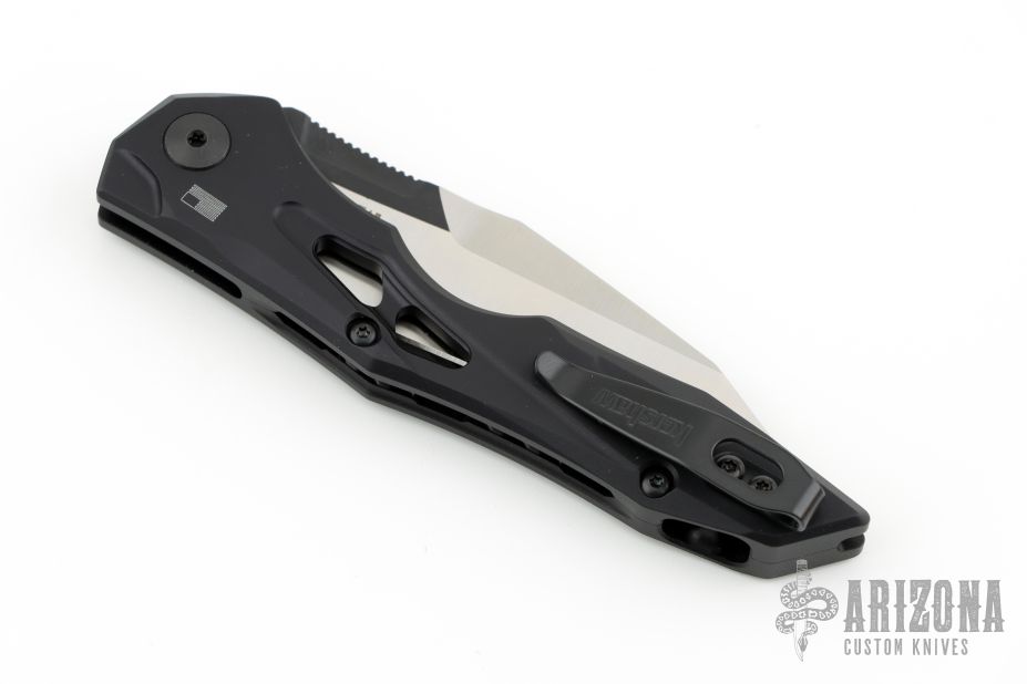 - Two-tone finished CPM 154 Wharncliffe blade.