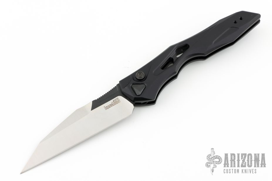 With its machined handle and integrated backspacer, the Kershaw Original designed Kershaw Launch 13 boasts a unique industrial appearance. The knife offers a lean profile equipped with a long Wharncliffe blade. Its ergonomic handle is made from lightweight aluminum with sculpted details that provide a solid grip and an eye-catching look. The Launch 13 features superb automatic action and easy one-handed push button deployment. A reversible pocket clip allows convenient left or right side carry.
