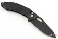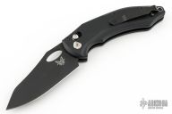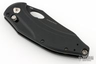 This 808BK Loco by Benchmade Knives features a black blade with thumbhole. The handle has black G-10 scales with black stainless steel liners, stainless steel backspacers, tip up black stainless clip, lanyard hole at the butt. Comes with original box, papers, and drawstring pouch. Has a couple light scuffs, excellent condition otherwise.