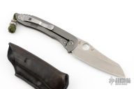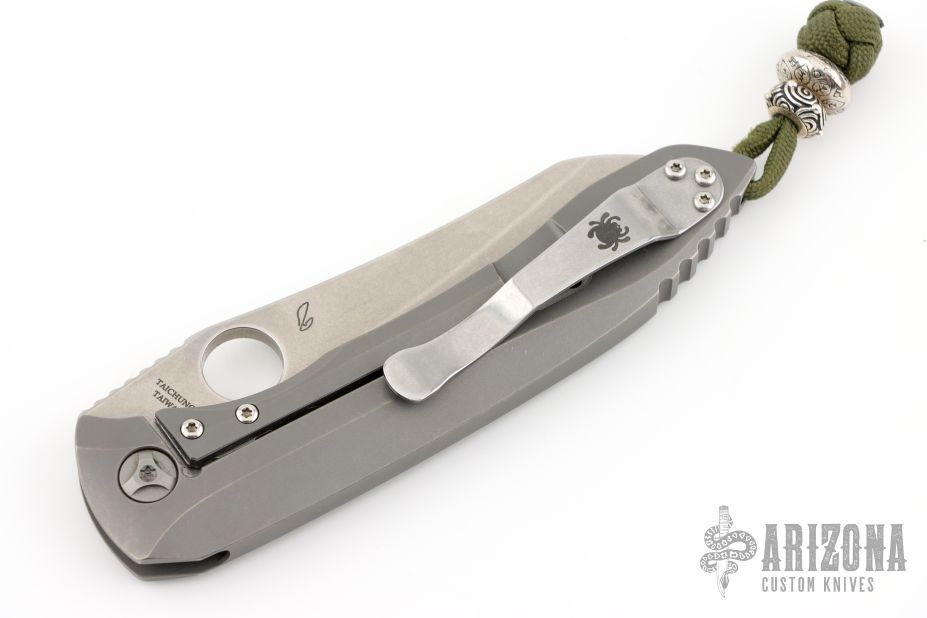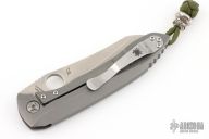The Spyderco Paysan is an exciting Peter Rassenti custom collaboration. Revealed at SHOT Show 2018, the Paysan features an integral frame lock design with a lockbar insert and over-travel stop. The S90V blade sports a tall grind to deliver high-performance cutting action, and rides on a smooth ball bearing pivot. It's built with a single-piece titanium handle that has been countered perfectly for an ergonomic grip. A stainless steel clip finishes off the stunning Rassenti design. Comes with spyderco zipper case and papers. Has a bead attached, and comes with leather pocket sheath with clip. Has a couple light scuffs, excellent condition otherwise.