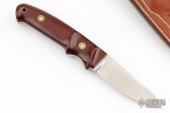 This rare Improved Handle Semi-Skinner from Bob Loveless features a satin finished blade with the "Lawndale" logo, .187" blade stock and 1.028" blade depth, full tapered tang construction. The handle has "Improved Handle" contoured red/black linen micarta scales with black liners. Knife is numbered "S-251". Comes with a brown leather sheath with matching number and signed on the front. Excellent condition. Comes with a custom zippered case with zebra hide overlay.