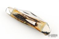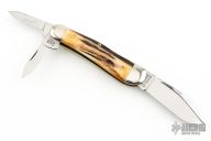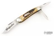This Three blade slipjoint by Case has mirror polished blades with nail nicks, "W.R. CASE & SONS" on the blade. The handle has nickel silver bolsters, India Stag covers, brass liners and steel springs. Has some light scratches, otherwise excellent condition. Comes with original box and COA. Dated 1992. One of 240