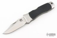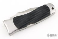 This Vintage Large Tomcat lock back by SOG features a satin finish blade with false top edge and nail nick. The handle has satin finished stainless steel bolsters, liners and backspacer, checkered rubber scales. Strong lock up. Comes with SOG nylon belt sheath. Has scuffs, scratches, and some light oxidation spots. Good condition otherwise.