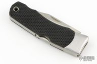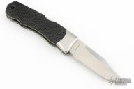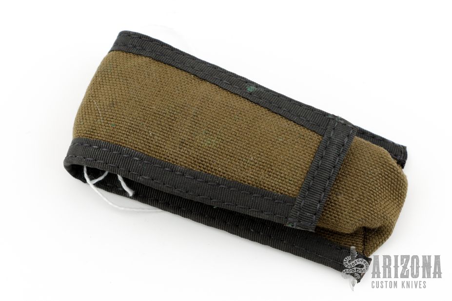 This Stingray lock back by SOG features a satin finish blade with false top edge and nail nick. The handle has satin finished stainless steel bolsters, liners and backspacer, kraton scales. Strong lock up. Comes with a nylon sheath. Has some light scuffs, scratches, and a few oxidation spots. Great condition otherwise.