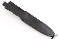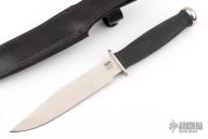 This Government by SOG features a clip point blade with .161" blade stock and 1.110" blade depth, hidden tang construction. The handle has a steel guard and butt with a rubber grip. Comes with a black leather sheath. Has some light scuffs and scratches, great condition otherwise.