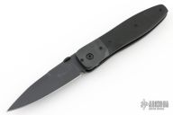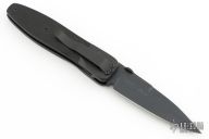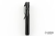 The LDC-7 by Crawford Knives is a linerlock folder designed by Les Robertson and made by Pat Crawford. It features a black blade with a sharpened top edge, black and dovetailed titanium bolsters, and black paper micarta scales, tip down black stainless steel clip and backspacer. Smooth action. Excellent work. Numbered "No. 34" on back side of blade. Comes with zipper case. Has a couple light scuffs, otherwise excellent condition.