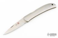 This Hawk by Al Mar features a satin finished blade with nail nick. The handle has a stainless steel scales, brass liners and stainless lockbar. Includes original box and leather slip sheath. Has some light scratches, otherwise excellent condition.