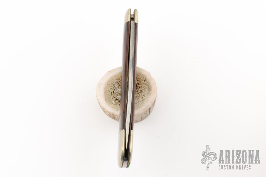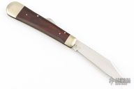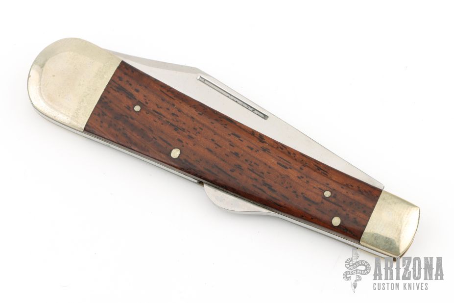 This lockback by William Rodgers features a mirror polished blade with nail nick. The handle has nickel silver bolsters, front and rear, brass liners, and stainless steel backspacer. Has scuffs scratches, and patina. Great condition otherwise.