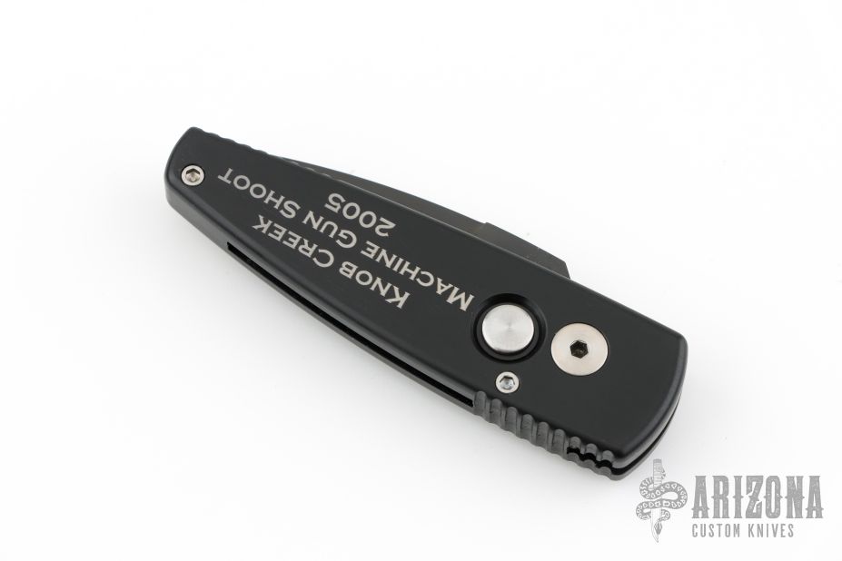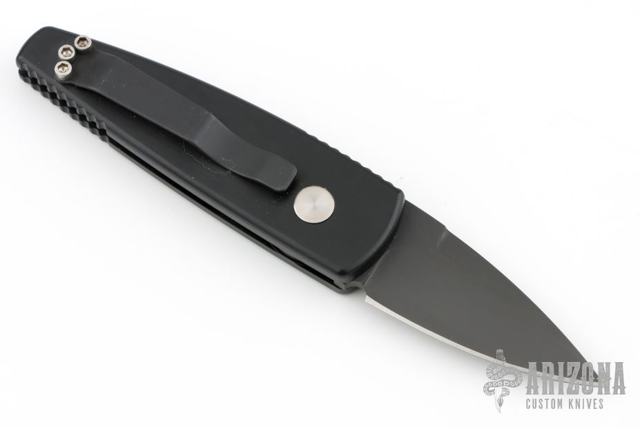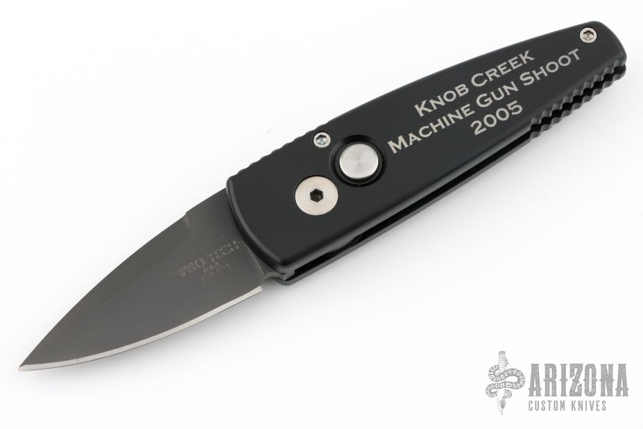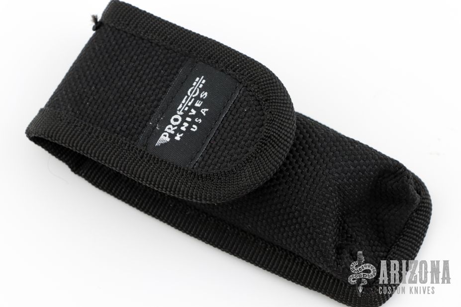 The California legal (blade is less than 2 inches) Pro-Tech Stinger features a precision ground spear point blade and milled ridges for extra grip in the spine and belly of the nicely contoured handle. The handle is hand satin finished prior to anodizing. Solid button release opening and closing plus compact, lightweight construction makes the Stinger a very nice automatic. Excellent condition. Comes with original sheath.