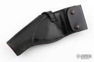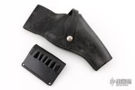 This Bucheimer Made Duty Holster & Cartridge Sleeve is crafted from black leather. Has some scuffs and patina, great condition otherwise.
