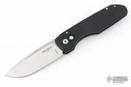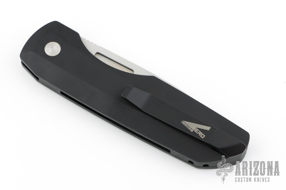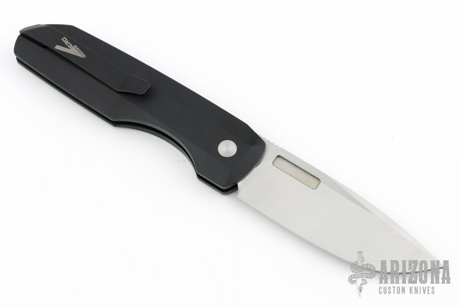 This Synapse Black LTD by Pro-Tech is a Vero Engineering design. It has a satin finished blade with notched thumbrest. The handle has a black canvas micarta and black aluminum frame, abalone push button, tip up black titanium clip with hidden screws. Comes with original box and papers. New from maker.