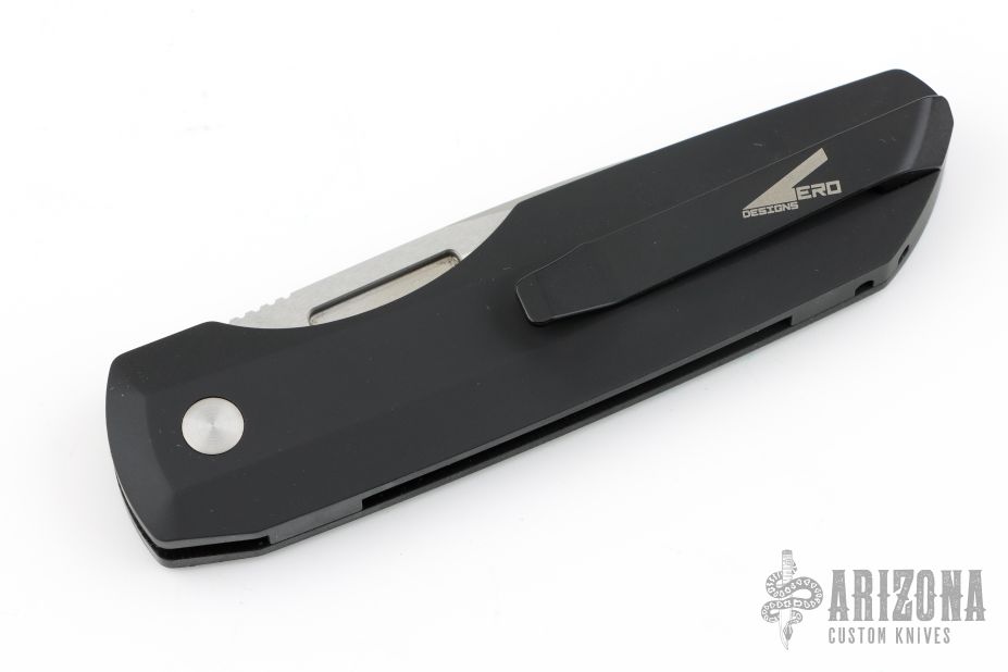 This Synapse Black LTD by Pro-Tech is a Vero Engineering design. It has a satin finished blade with notched thumbrest. The handle has a black canvas micarta and black aluminum frame, abalone push button, tip up black titanium clip with hidden screws. Comes with original box and papers. New from maker.