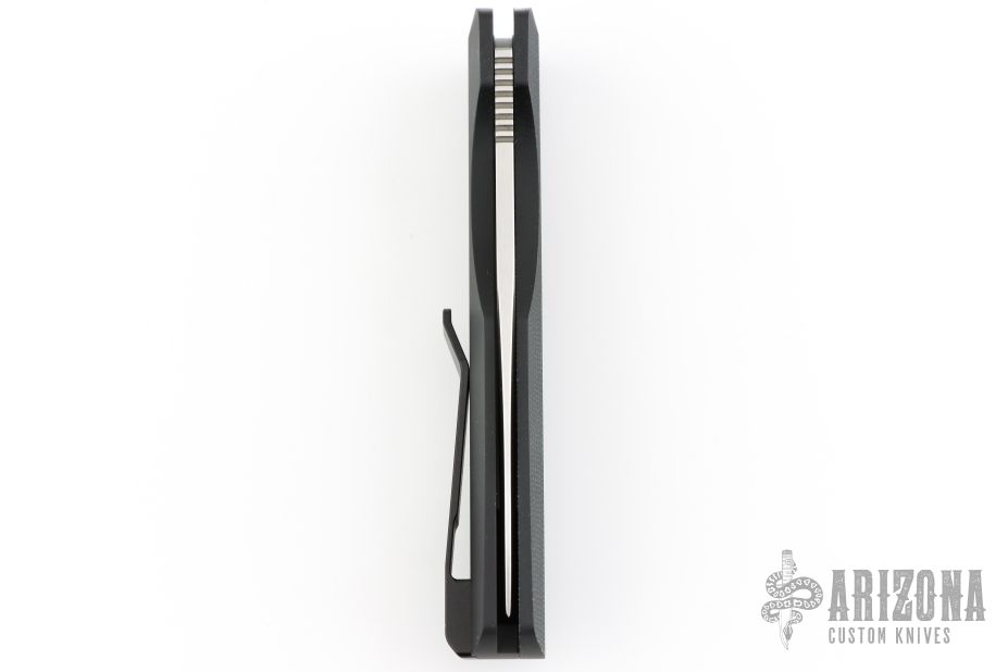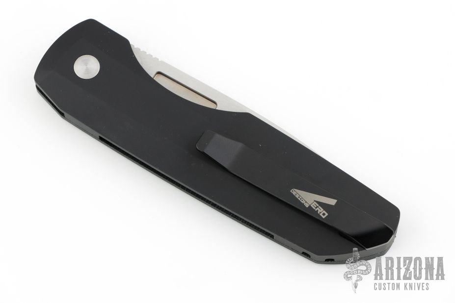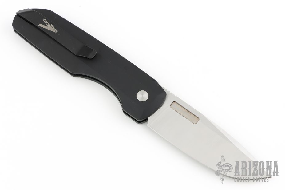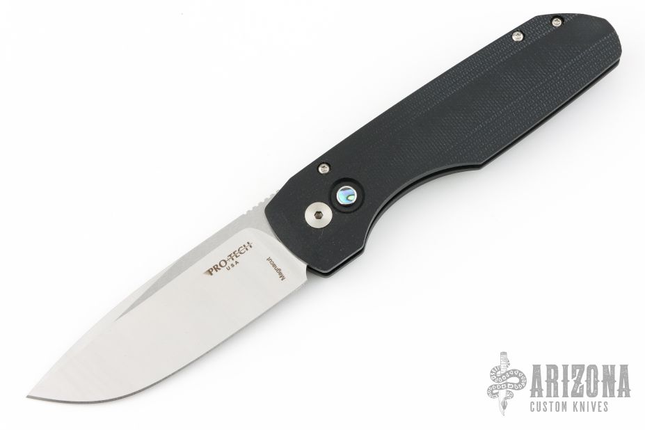 This Synapse Black LTD by Pro-Tech is a Vero Engineering design. It has a satin finished blade with notched thumbrest. The handle has a black canvas micarta and black aluminum frame, abalone push button, tip up black titanium clip with hidden screws. Comes with original box and papers. New from maker.