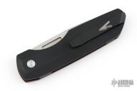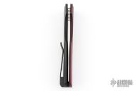 This Synapse Black LTD by Pro-Tech is a Vero Engineering design. It has a satin finished blade with notched thumbrest. The handle has a burgundy canvas micarta and black aluminum frame, abalone push button, tip up black titanium clip with hidden screws. Comes with original box and papers. New from maker.