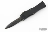 This Hera by Microtech Knives features a double-edged DLC stonewashed blade with dual fullers. The handle has a black aluminum frame with a tip down DLC titanium clip with ceramic ball inset. Dated 03/2022 and s/n 716. Excellent condition.