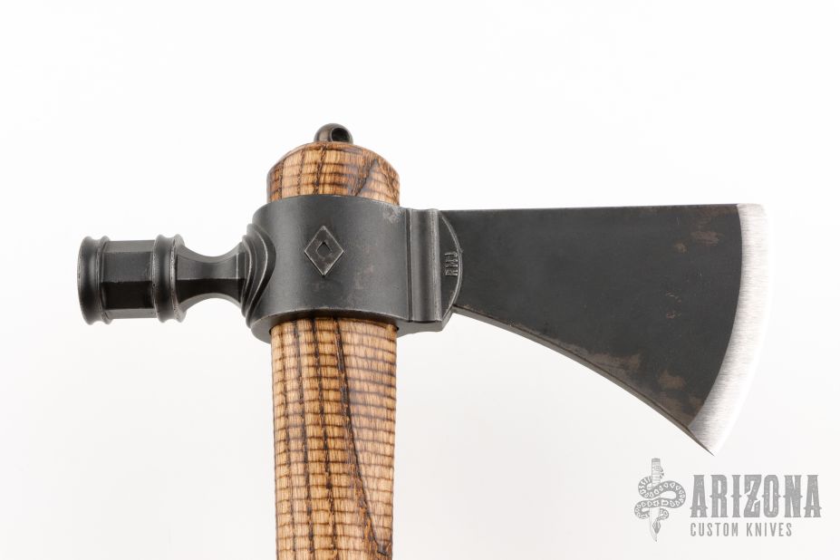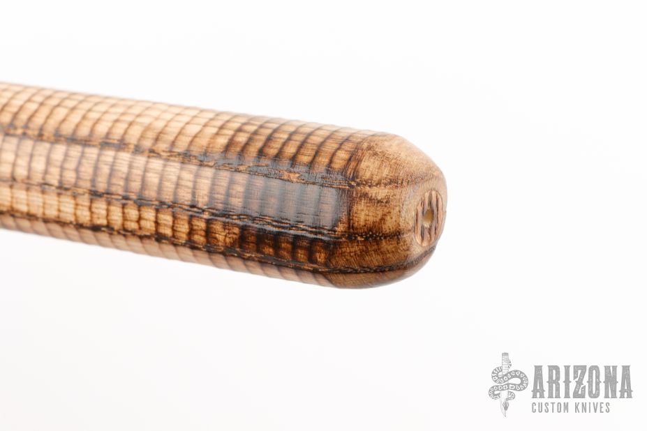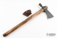 The Patriot pipe tomahawk is a mix of history along with new and old school manufacturing techniques to create an incredible, working tomahawk. Ryan Johnson's historical knowledge and distinct design philosophy, makes for a heck of a foundation. The authentic style head is investment cast from 6150 tool steel, and finished with a gorgeous, dark patina. The 19" ash handles, made by Ryan on a 1903 Gunstock lathe have a very unique texture and finish. If you do smoke it, the handle has a threaded 17-4 stainless steel clean out plug.