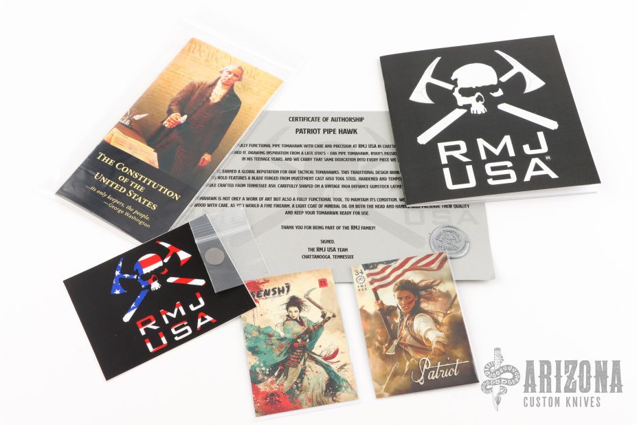 The Patriot is not just a conversation piece, it can be used for camp chores like splitting wood, and you can have some fun throwing it, and smoke it.
