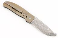 This CP1K linerlock flipper from Charl Pienaar features a Thor Damasteel blade with notched front flipper and thumbrest. The handle has a lightning strike carbon fiber scale, with orange peel and anodized finished titanium frame with matching tip up clip. Nice detent, lockup and blade seating. Comes in a Civivi zipper case. Has some scuffs and scratches on the clip and frame, as well as some light marring on the pivot/hardware. Excellent condition otherwise.