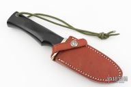 The Fireman Special by Randall is a non-catalog model with an extra-heavy beveled blade with 225" blade stock and 1.220" blade depth. This knife has a 4" stainless steel blade with notched thumbrest, nickel silver guard, and a black linen micarta grip, full tang construction. Comes with a brown leather sheath. Excellent condition.