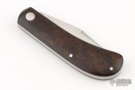 This Lanny's Clip by Jim Dunlap features a hand rub satin finished blade with long pull. The handle has pinched stainless steel bolsters, Westinghouse paper micarta covers, stainless steel liners and springs. Has half-stop, and is flush in all positions. Includes padded zippered case. Excellent condition.