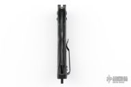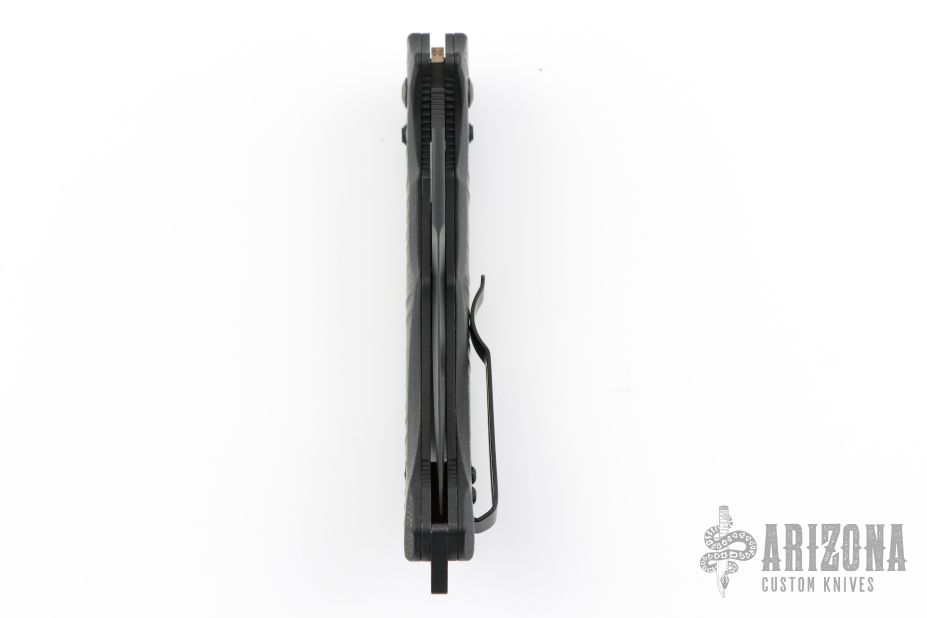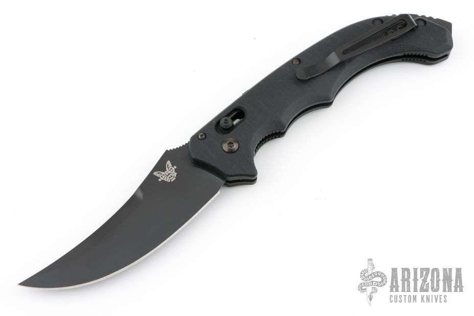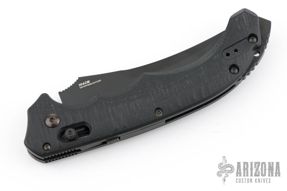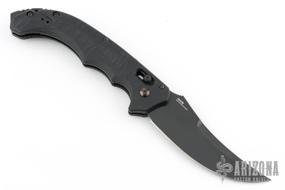 Well-balanced, symmetrical, eye-catching, The Bedlam has a black coated 154CM blade that is released with the AXIS locking button. Safety on top of knife. Sculpted black G10 handle fits comfortably and securely. Reversible tip up black clip. Comes with original box. Has a couple light scuffs, otherwise Excellent condition.