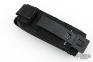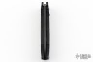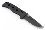 This Siebert designed 2750BKS Adamas Auto Axis Lock has a black coated D2 stainless steel drop point blade with blood grooves and notched thumb rest. Handle is black G10 over black stainless steel liners, tan G10 spacer, reversible tip up black stainless steel clip, and spine safety button. Comes with original box and nylon belt sheath. Has a couple light scuffs and scratches, otherwise Excellent condition.