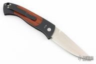 The Brend Auto #3 is the newest Pro-Tech model to feature Walter Brend's famous "Model 1" blade shape. The #3, or "Medium Brend", is larger than the #2 and smaller than the #1. Coil spring side-opening automatic. This Brend Auto #3 has a satin finish blade and black handle with cocobolo inlays. Third production run #213. Comes with original box and papers. Has a couple light scuffs and scratches, otherwise Excellent condition.