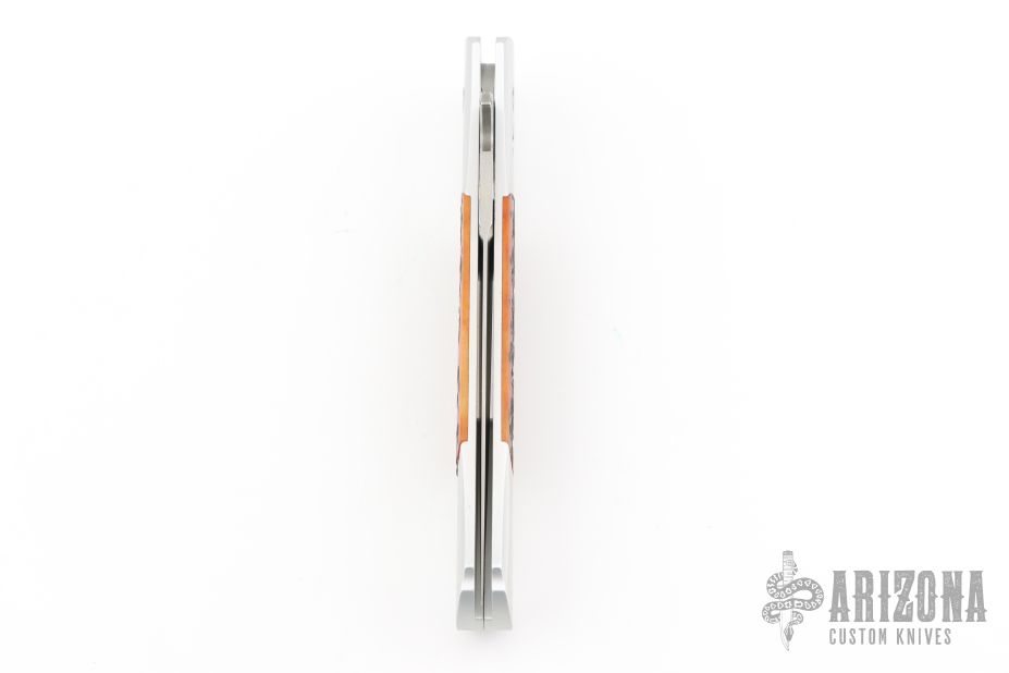 This Don by Pro-Tech features a satin finished blade with false top edge. The handle has an aluminum frame, with jigged bone inlays, mosaic pin inlaid push button. Comes in original clamshell box, with outer paper sleeve. PR4 s/n 367. Excellent condition.