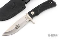 This Drop Point Hunter from Colt features satin finished blade with .142" blade stock and 1.255" blade depth, hidden tang construction. The handle has a stainless steel guard, rubber grip with a lanyard hole. Comes with a black leather sheath and original box. Excellent condition.