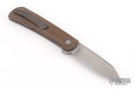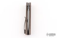 This Swift V2 by Jared Price features a dark hand rub satin finished Magnacut blade with notched thumbrest and flipper. The handle has vintage canvas micarta scales, darkened titanium pivot collars and tip up clip, blasted hardware and and liners, vintage canvas micarta backspacer. Rides on bearings, nice detent, lockup and blade seating. Comes with original box and COA dated 2/21/25. New from maker!