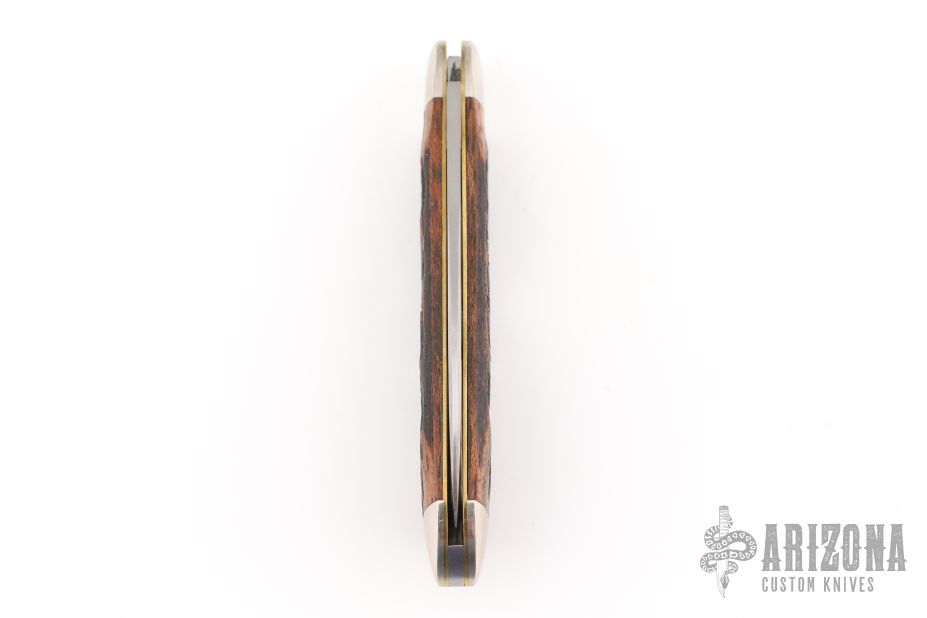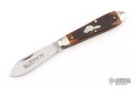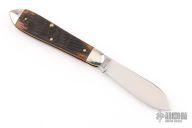 This slipjoint by Great Eastern Cutlery features a satin finished blade with nail nick. The handle has nickel silver bolsters and brass liners, Jigged Brazilian Cherry Wood covers, steel spring. Comes with original tube. Excellent condition.
