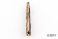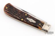 This knife by Great Eastern Cutlery features a mirror finished blade with nail nick. The handle has nickel silver bolsters that are pinched and fluted, nickel silver escutcheon, brass liners/pins, appaloosa horsecut bone covers. Has half-stop. Comes with original tube. Excellent condition. 78 made