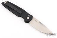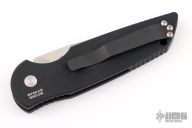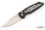 This TR-3.5 model has a black finished handle with a Shaw Steampunk inlay and a satin finished blade. The TR-3 Auto is an offering from Protech Knives. It features a 6061-T6 aluminum handle with a black finish and a nickel silver inlay. The 154-CM steel blade is black finished with a plain edge. Black coated pocket clip and hardware finish off the design. Comes in a Pro-Tech box with papers. Has a couple light scuffs and scratches, great condition otherwise.