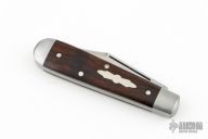This slipjoint by Great Eastern Cutlery features a satin finished blade with nail nick. The handle has stainless steel bolsters, desert ironwod covers with stainless steel liners/pins, steel spring. Has half-stop.  Comes with original tube. Excellent condition. 94 made