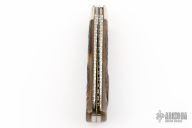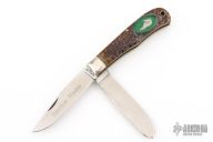 This Slipjoint from Camillus features two satin finished blades with nail nicks. The handle has nickel silver bolsters and jigged faux bone covers over brass liners and stainless steel springs. Blade spines and springs have been file worked by Ken Metsala. Has some light scuffs, and scratches, great condition otherwise.