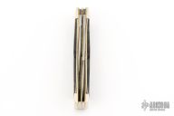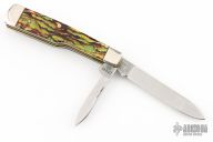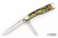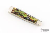 This small gunstock by Case Knives features polished blades with nail nicks. The handle has nickel silver bolsters and cap, acrylic covers, brass liners, stainless springs. Has half-stops. Has some light scuffs and scratches, great condition otherwise.