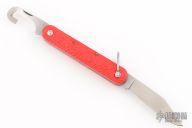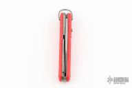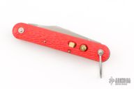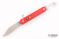 This knife by Camillus features a clip point blade. The handle has orange jigged scales, stainless steel liners and backspacer. Has some light scratches, otherwise good condition.