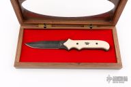Limited to a serialized quantity of 100 pieces this one is #054, the Buck 970 Carbon Dagger features a 4.125" full tang damascus steel blade. Ivory paper micarta scales with a generous finger grooves add to the overall esthetics of the beautiful knife. Display with pride with the included glass topped wooden display case and certificate of authenticity. Comes with original box and papers. Excellent condition.