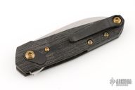 We made a total of 16 of these with a handle in Black Denim Canvas Micarta and DLC Coated Clip, Spacer & Chassis. Screws are Anodized Amber color.
