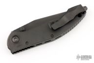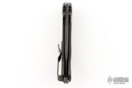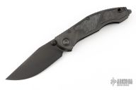 This linerlock was designed by Marfione Custom Knives and manufactured by CKF. This knife features a black finished clip point blade with a filed thumbrest. The handle is composed of black titanium with marble carbon fiber inlays. Black titanium tip up pocket clip. Includes a padded Velcro case, COA and extra hardware. Excellent condition.