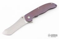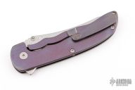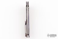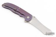 This Norseman (#6317) by John Grimsmo features a stonewashed blade with a single titanium thumb stud, notched thumb ramp and flipper. Stonewash and anodized finished titanium frame with silver titanium screws. Has a matching clip with hidden screws. Very smooth action that requires no wrist movement. Nice detent, lockup and blade seating. Rides on ceramic bearings. Comes with original packaging, custom hard case, Nano-Oil, tool, and COA dated Sept 12, 2022. Excellent condition.