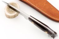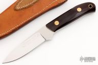 "I am a full time maker and make knives using both forged and stock removal methods. My first knife was made in 1953. I am a former board member and past chairman of the American Bladesmith Society. I make one of kind designs, some to customer specifications. I have studied with Bill Moran and Bob Loveless and do make some Moran styles, as well as Loveless style hunters. For my forged blades I use 5160, L6, 1095, 15N20 Damascus. I use ATS-34, CPM154 & S30VTEC for my stock removal styles. Earned ABS Mastersmith in 1993." Passed away in 2022