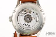Vaer Watch with leather band. 40mm Diameter 316L stainless steel case. 10 ATM or 100 meters. Swiss made Ronda quartz movement. Assembled in Los Angeles California. Has some light scuffs and scratches, otherwise good condition. Winds and ticks.