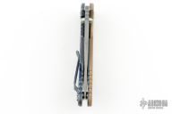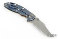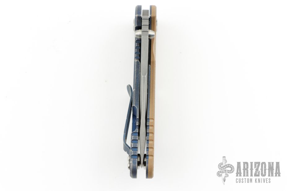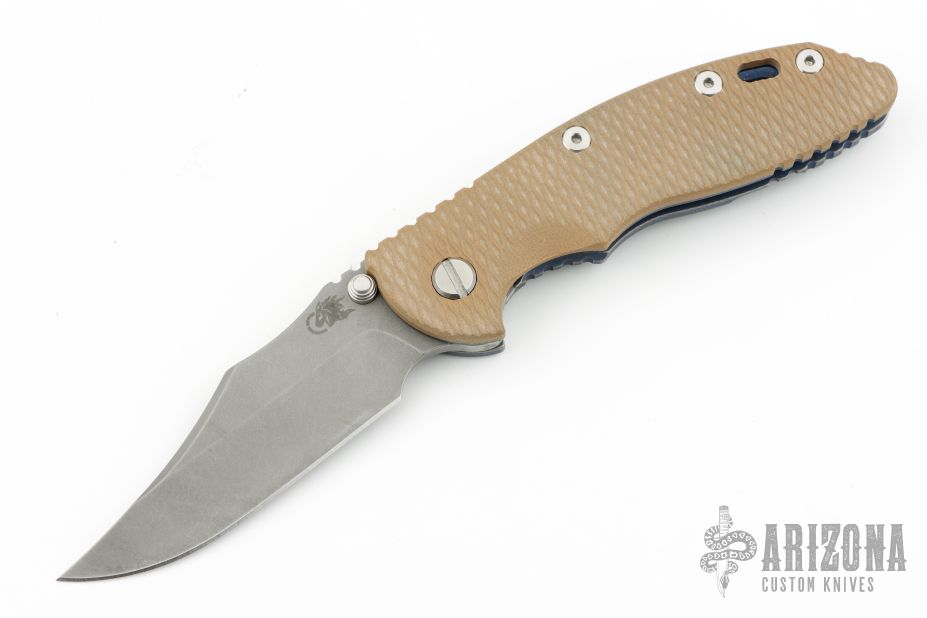 This XM-18 Bowie by Rick Hinderer Knives features a 3.5" stonewash finished blade, notched thumbrest and dual thumbstuds. The handle has a coyote G-10 scale, and a "storm claw" titanium handle/clip. Clip can be mounted for tip up or down carry. Tri-way pivot system.  Nice lockup, and detent. Has some scuffs and scratches, great condition otherwise.